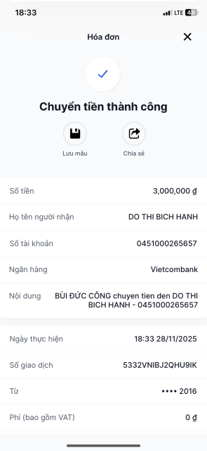 Do chưa có người đảm nhận việc trung chuyển tiền hàng tháng nên chúng ta sẽ chuyển tiền 1 lần cho 3 tháng vào tài khoản của em Đức nha các bạn.