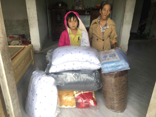 Chị Yến Nguyễn kết nối bà Ngô Thị Vân giúp đỡ phần quà chăn, màn, gối.... cho bà cháu bà Yên