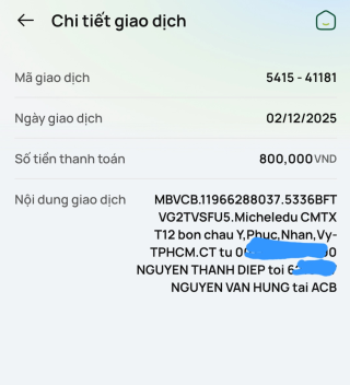 Cháu xin cập nhật vào ngày 13/12/2025 bà Phượng đã nhận được 200.000vnd từ Michele_du và gd ạ !