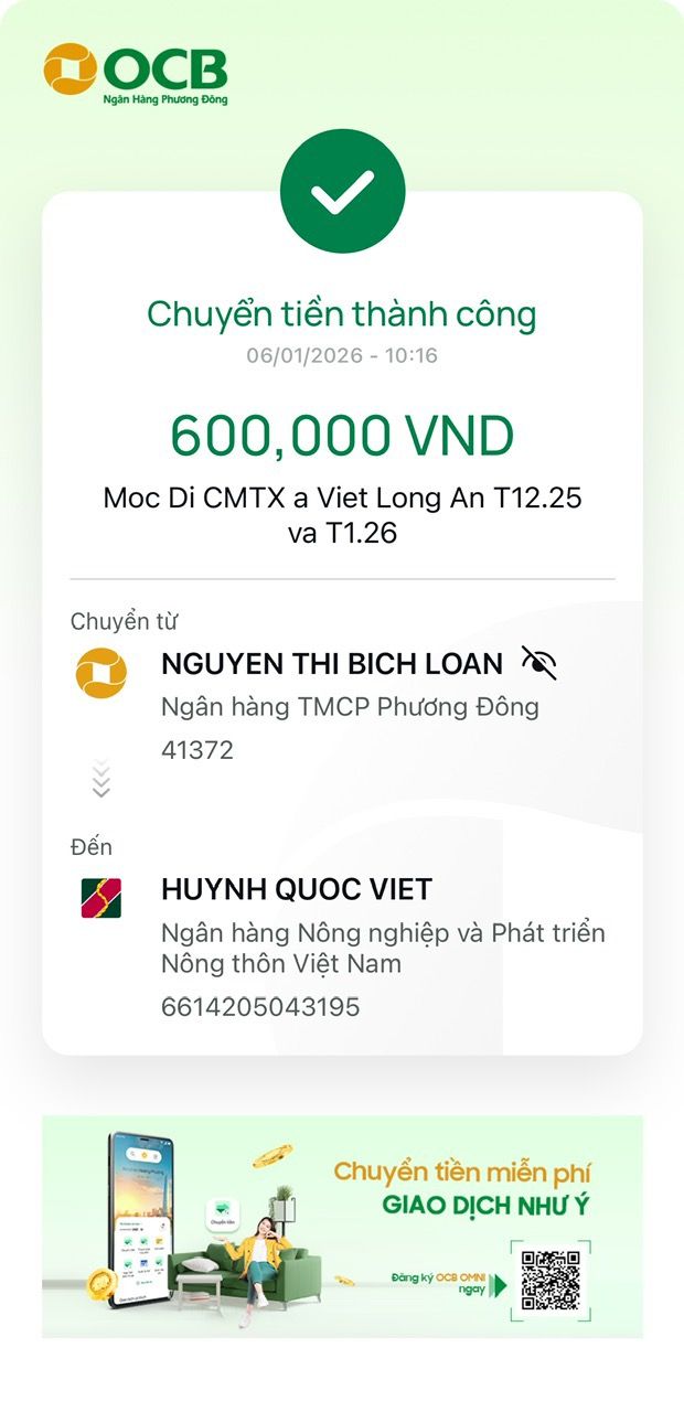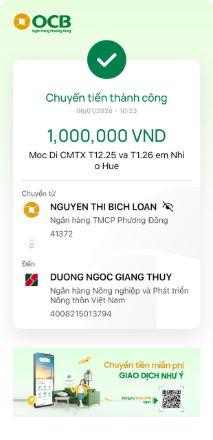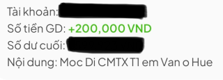 Trong 2025 vẫn chuyển khoản đủ vào TK anh Việt, cảm ơn Mộc Di và cả nhà!
