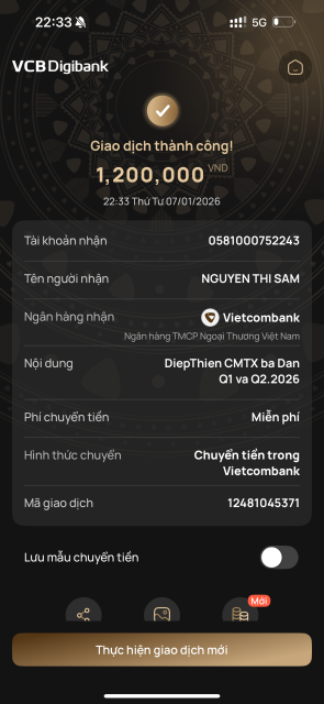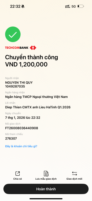CMTX T01/2026 của cô Michele_du và GĐ đã đươc chuyển đến cháu Anh Thư -Thành Trung.