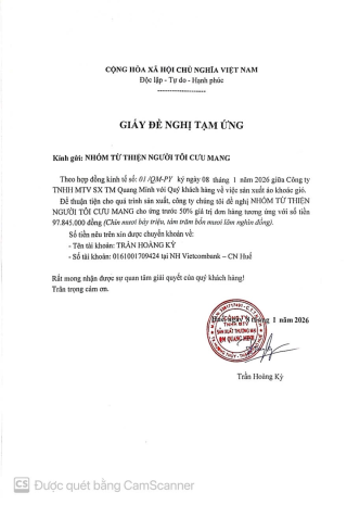 Dạ Khánh Ly đã nhận tiền từ quỹ và đã ứng mua một số đồ dùng ạ. Và hàng đang trên đường ra Huế ạ.