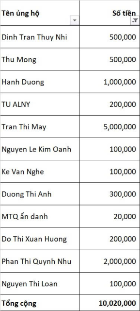 LƯU Ý: Quý mạnh thường quân, nhà hảo tâm nếu em có ghi thiếu sót tên và số tiền xin báo lại để em kiểm tra nhé💗