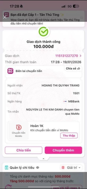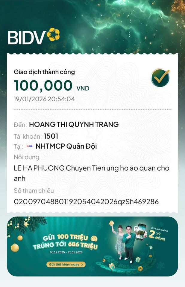 NGÀY 22/12/2025, HBL ĐÃ NHẬN được tiền của NTCM gửi hỗ trợ cho cháu Hương: 9.554.000 đ
