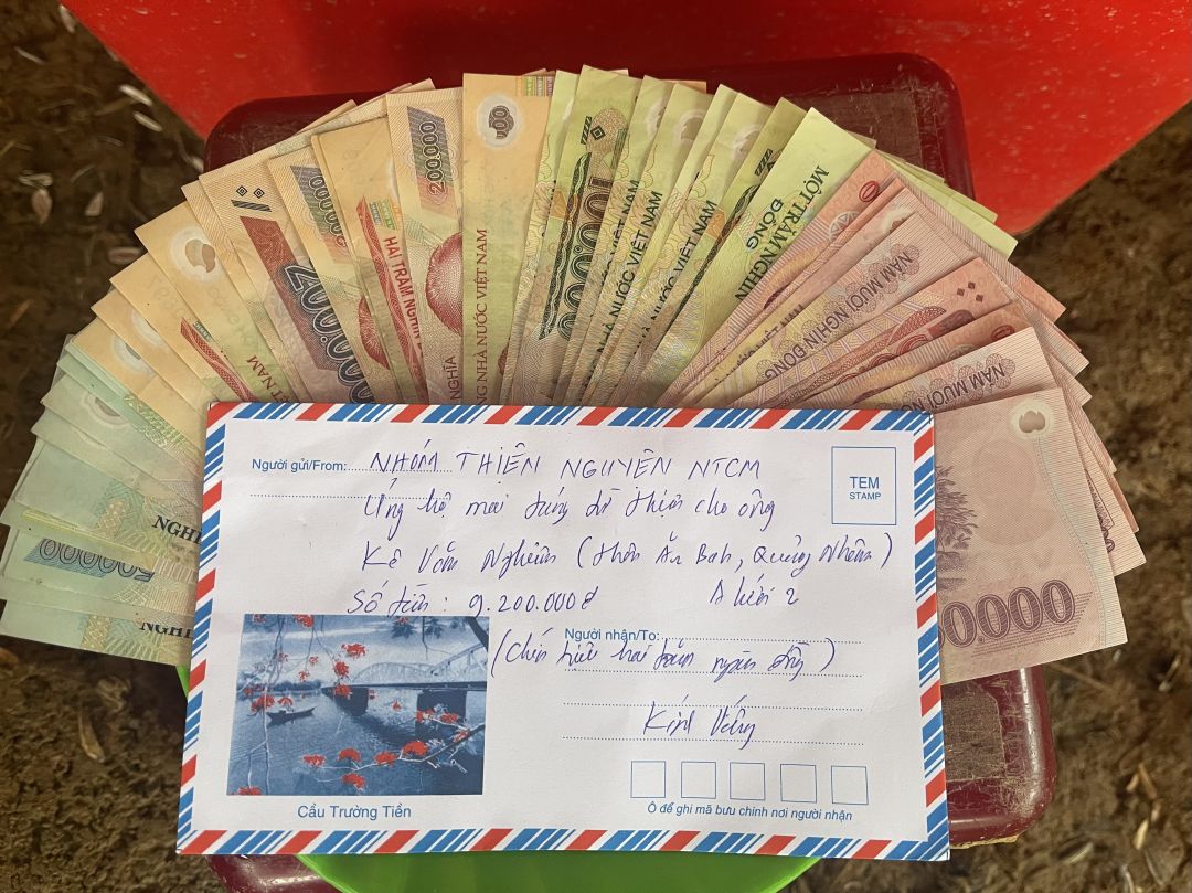 Đến chia buồn với gia đình, Em xin trao tổng số tiền 9.200.000 VNĐ để phần nào đó gia đình lo hậu sự cho ông Kê Văn Nghiêm được chú đáo hơn.