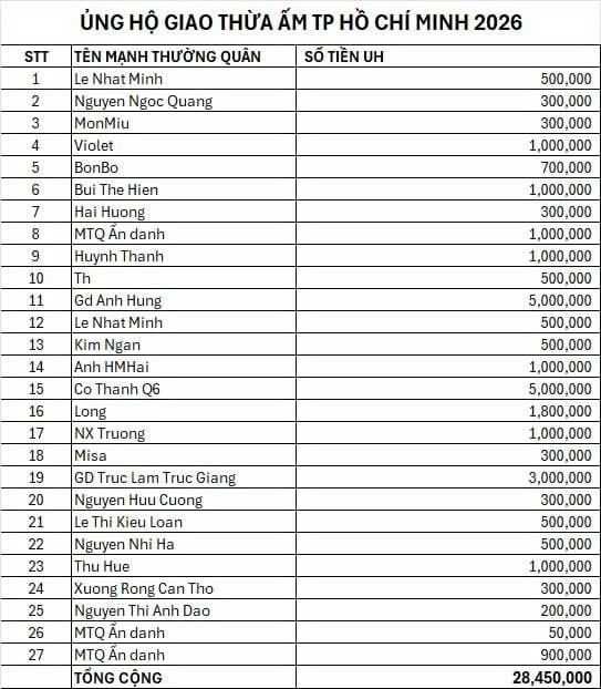 con Nguyễn Hữu Thọ gửi cập nhật ủng hộ chương trình Giao Thừa Ấm HCM 2026 đến hiện tại :