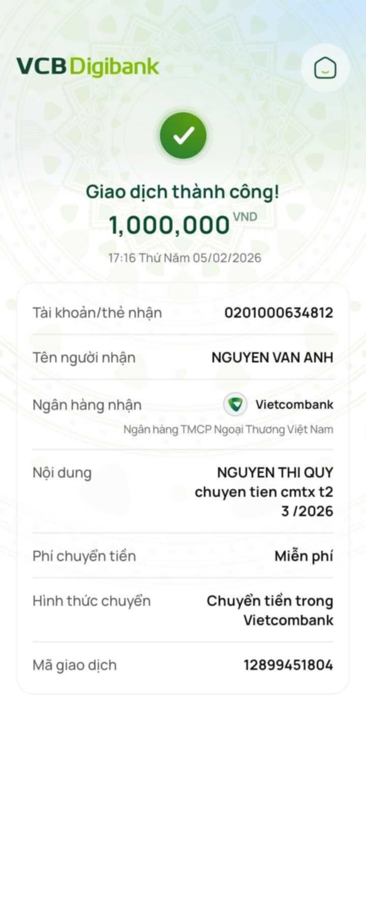 Em đã trao hỗ trợ CMTX tháng 2/2026 cho anh Bút với số tiền là 500.000đ. Được sự hỗ trợ từ chị Yến, anh Bút cùng gia đình biết ơn chị Yến rất nhiều. Nhân dịp năm mới chúc chị và gia đình thật nhiều sức khoẻ, thành công và bình an ạ!