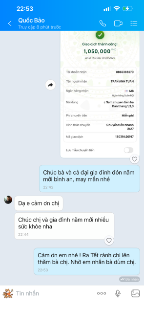 Chân thành cảm ơn hỗ trợ từ chị Ngân300.000 đ, em Trang 500.000 đ