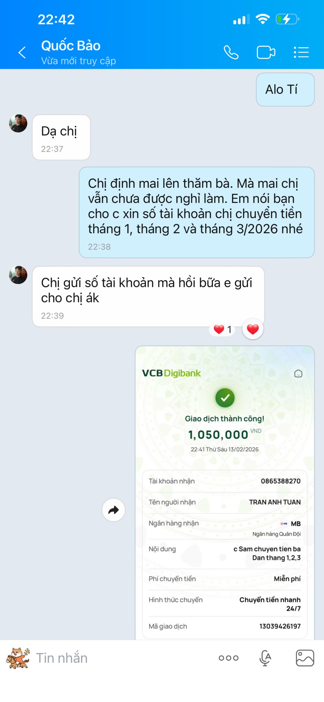 Chúng ta sẽ tiếp tục xuất quỹ NTCM để CMTX chị Liên 300,000₫/tháng từ tháng 2 đến hết tháng 4/2026 các bạn nhé.