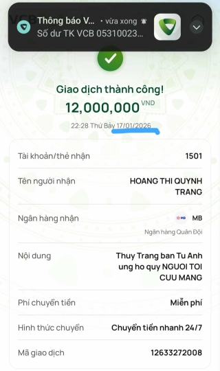 Ngày 29 và 30/01/2026. HBL đã ck cho cháu Hương: