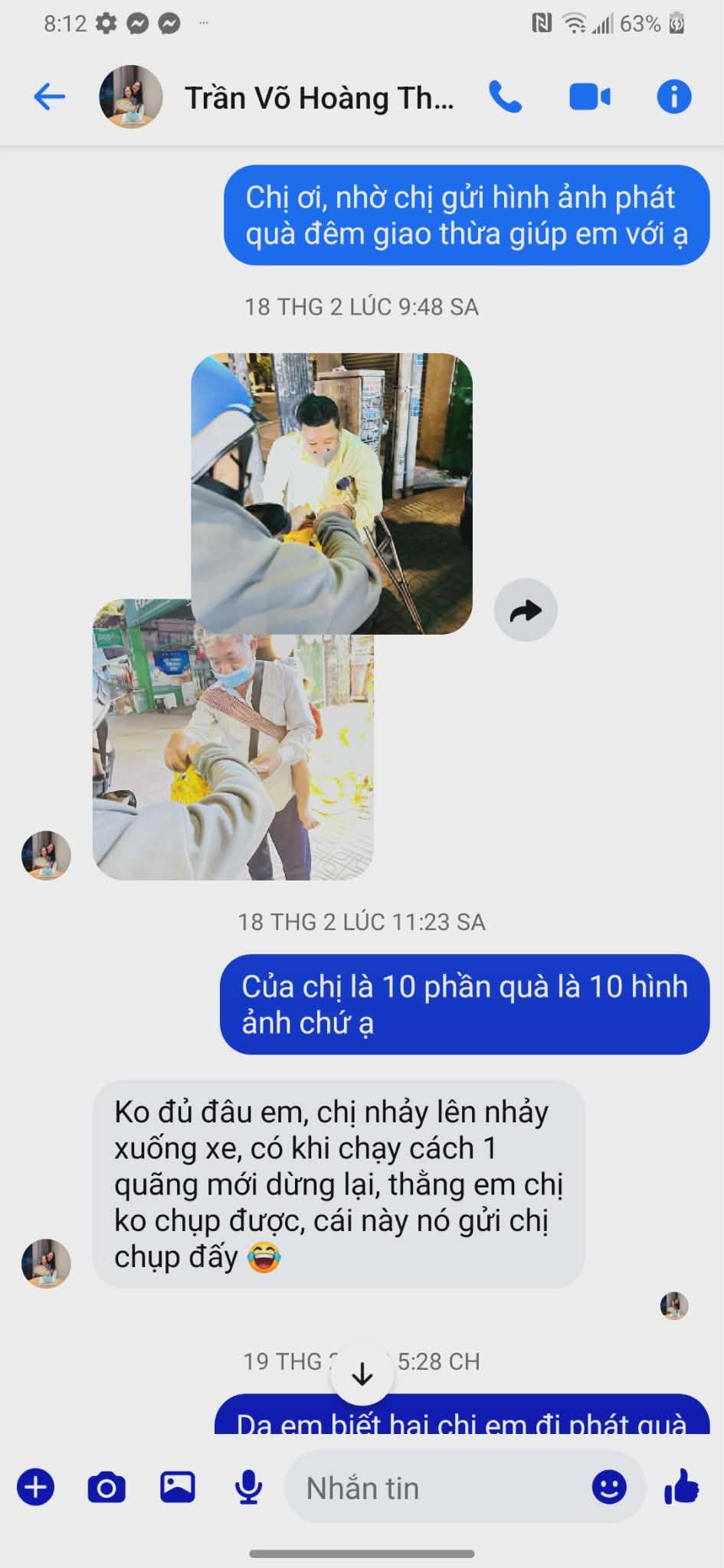 HBL nhận được tin nhắn của cháu Hương xin được giúp đỡ tiếp tiền mua thuốc Tây, mua thuốc Lá và tiền mua thực phẩm.