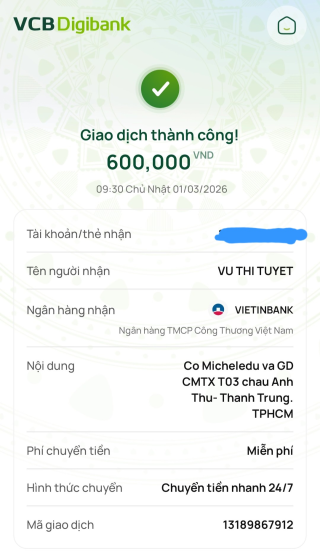Lathuvang đã chuyển CMTX T3/26 đến cháu Anh Thư - Thành Trung - TPHCM.