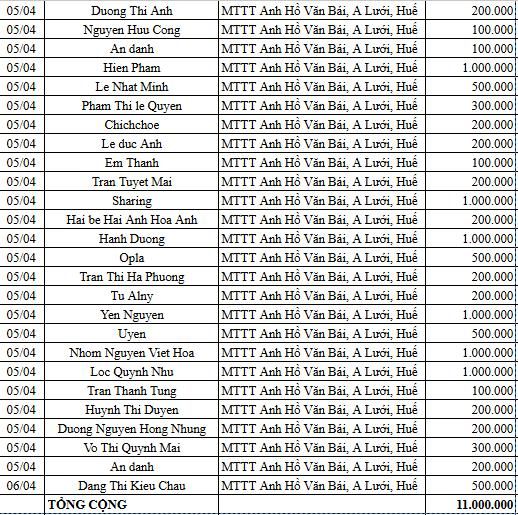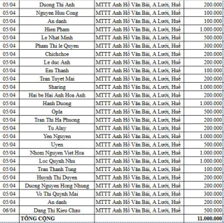 Danh sách quý tấm lòng vàng kèm theo danh sách đã tổng hợp: