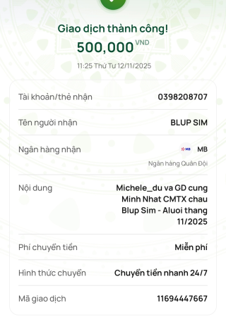 Tiền CMTX tháng 11/2025 từ Michele_du và Gia đình cũng Minh Nhật đã gửi tới cháu @Blup_sim