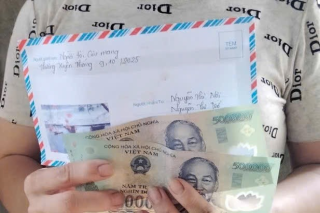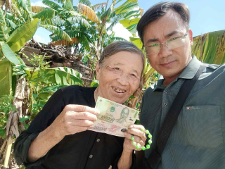 Do ông ngoại cháu bận công việc nên mẹ của cháu đã thay mặt gia đình nhận giúp số tiền trên.