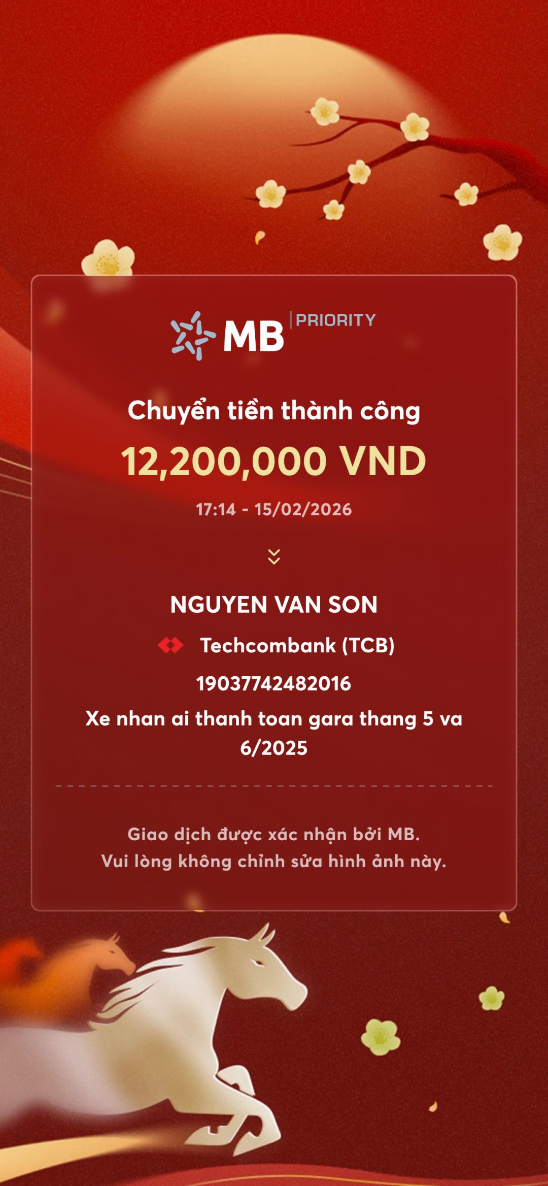 Sau khi có ý kiến Bác 6, KLy đã chuyển trả đến Gara và đã gọi điện đến anh Sơn, chủ Gara để cảm ơn và xin lỗi vì sự chậm trễ này.