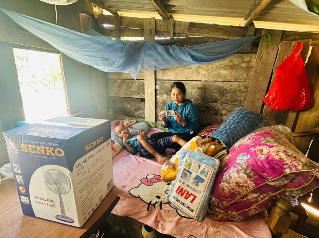 Chị Yến Nguyễn kết nối bà Hường giúp 2 mẹ con cháu Đon 1 triệu tiền mua chăn, quạt...