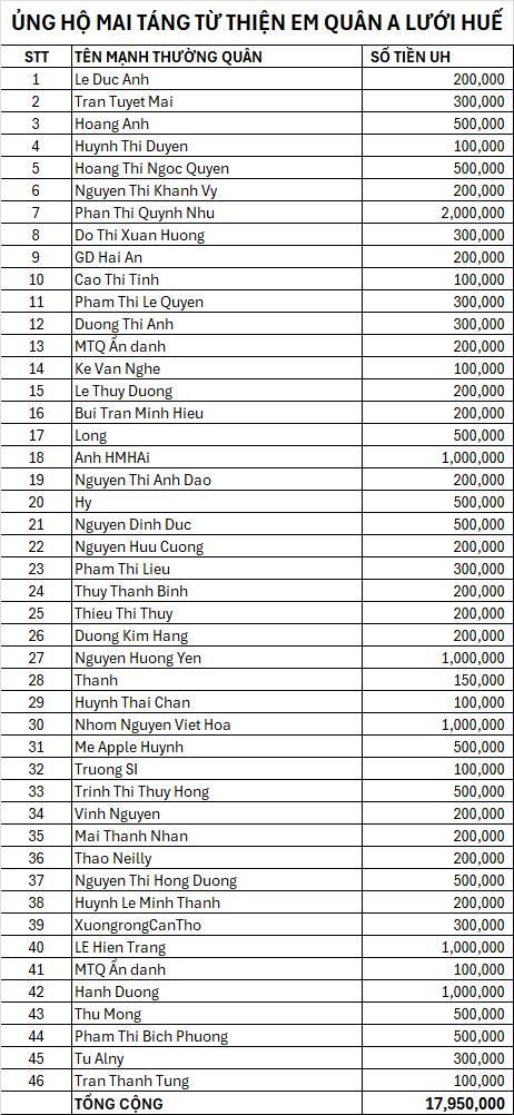 Đọc thêm: Re: A Lưới - Huế/Từ Thiện Mai Táng Em Hồ Anh Quân