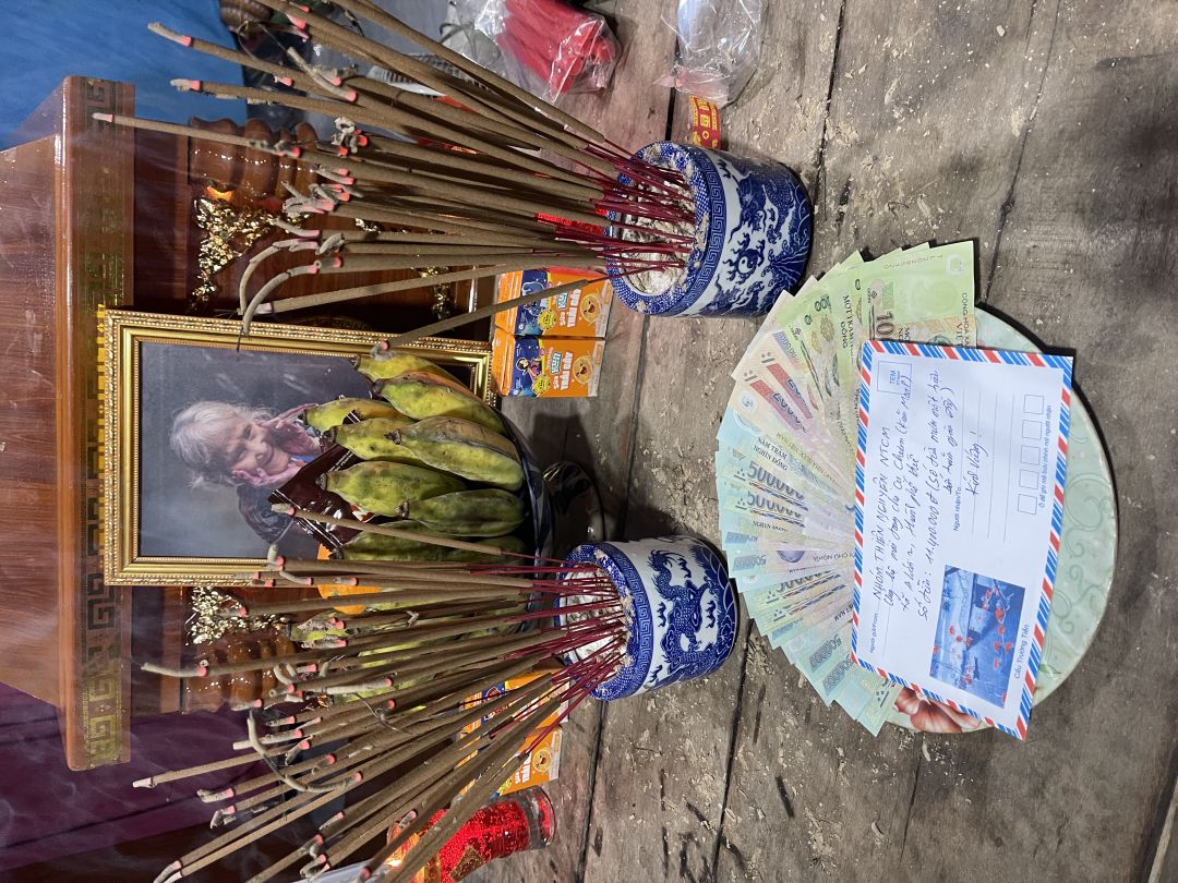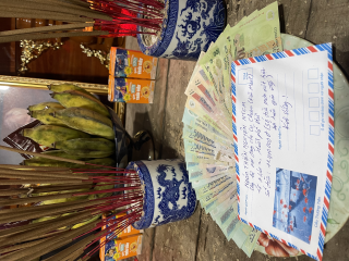 Em trao tiền xong và ở lại với gia đình đến 23h tối không thấy ai tới viếng cả chỉ có gia đình thôi.