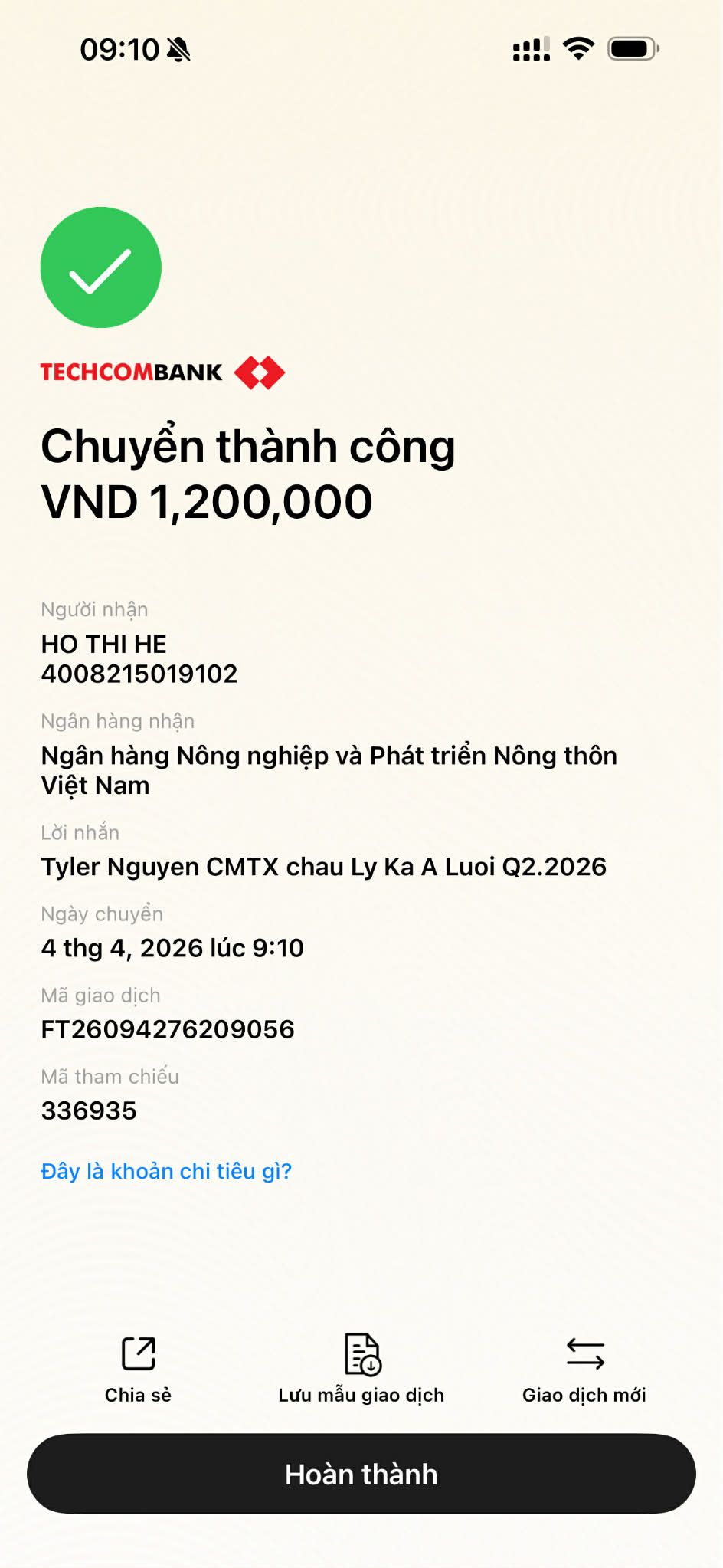 Tyler Nguyen tiếp tục giúp đỡ anh. Số tiền CMTX Q2/2026 đã được chuyển khoản.