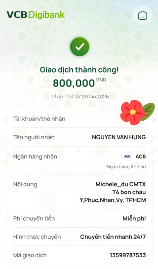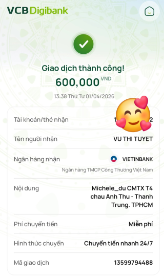 - Chị Nguyen Thi Dieu Huyen CMTX T3: 500,000đ.