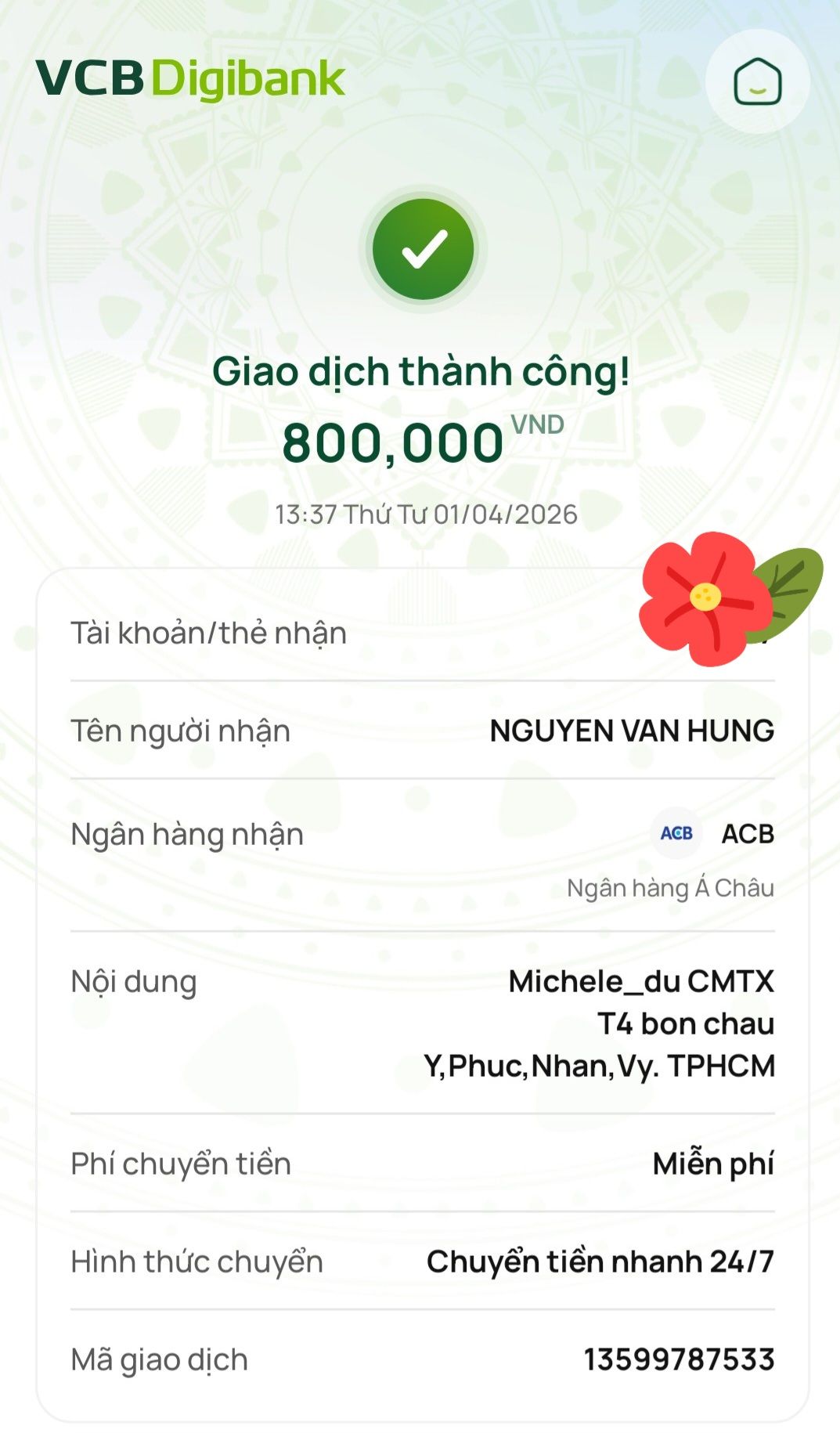 Chị @Wendy Duong xem thử nếu cần hỗ trợ CMTX giúp cho các em thì xác minh thêm thông tin giúp nha chị.