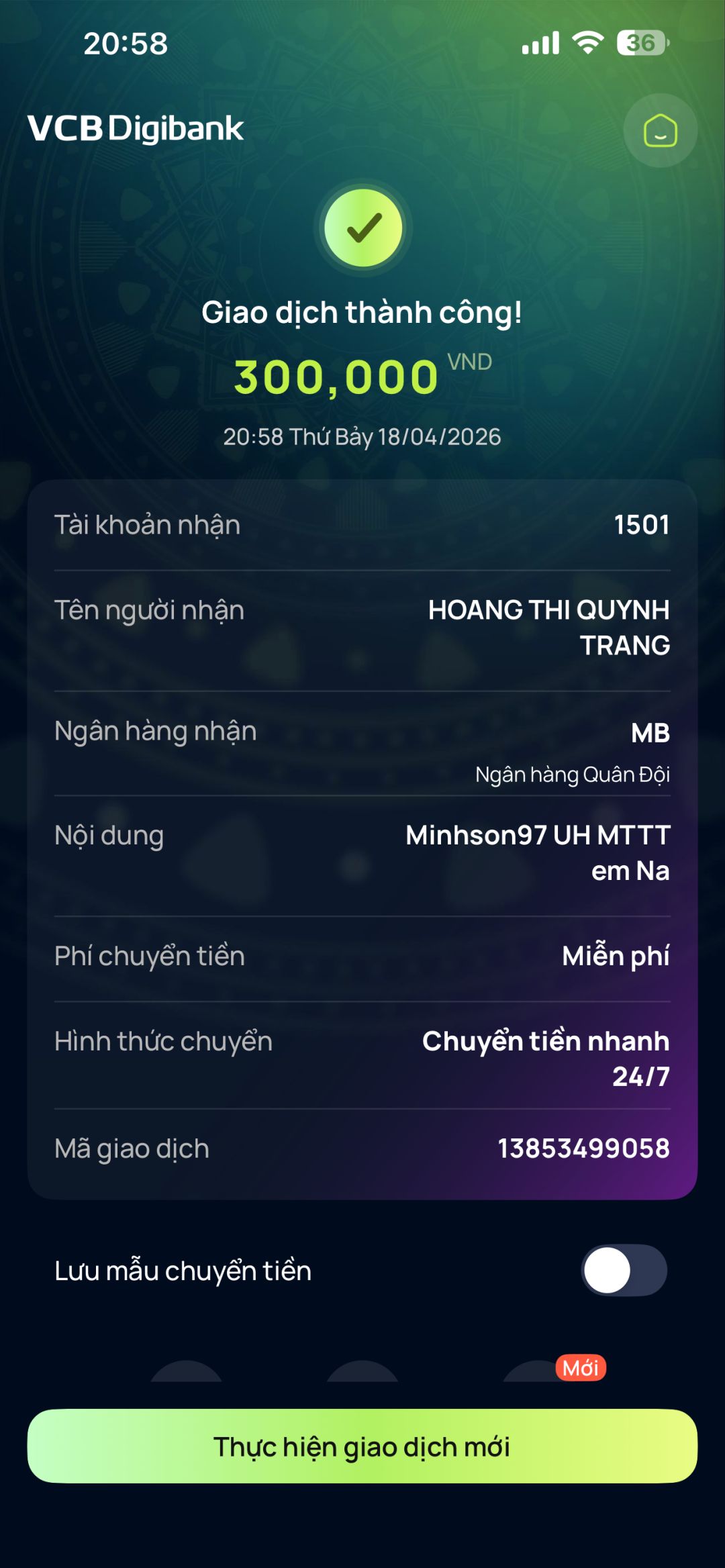 - Chị Ngoc Trang CMTX T4: 3,000,000đ.
