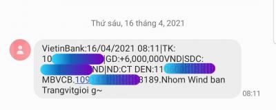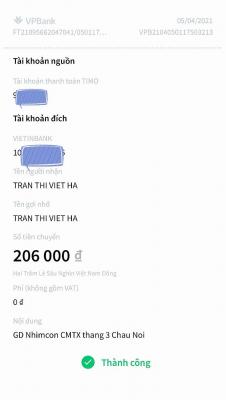 GD Nhimcon đã chuyển CMTX tháng 4/2021 rồi nhé. Nhờ chị Hà chuyển giúp ạ! Thanks chị !