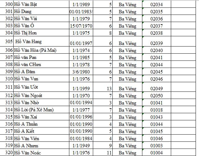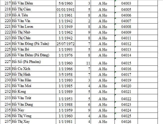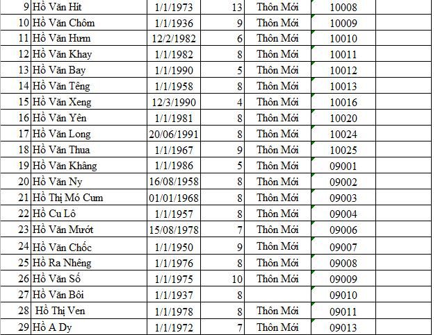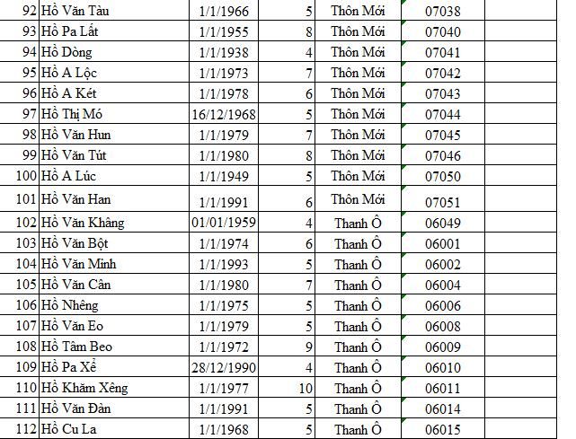 Các bạn có thể yêu cầu anh Cất Chủ tịch xã gửi danh sách nhé.