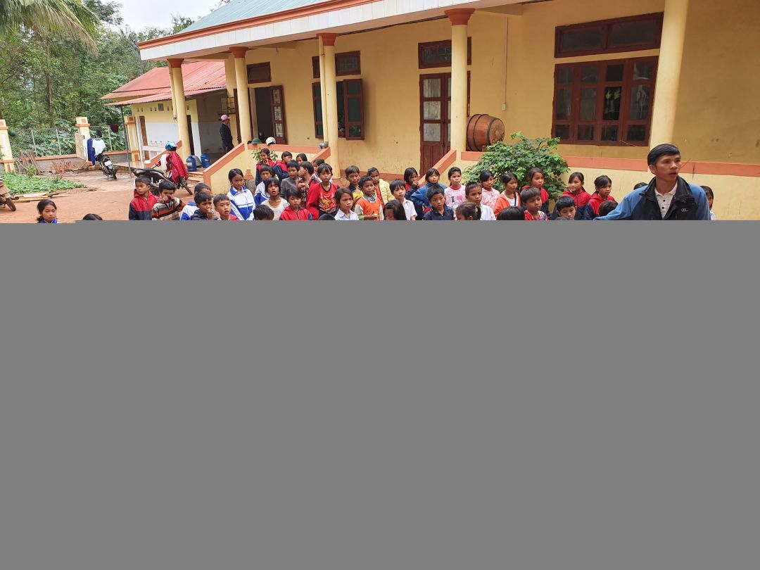 Nhóm 4: Trao quà hỗ trợ bán trú cho 80 e HS tại điểm trường Thanh 4 củaTrường Tiểu học Thanh (gối, chăn, thảm, muỗng/thìa) và áo quần, chăn gối, ly uống nước, mũ dép cũ.