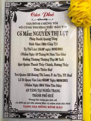 Thành kính phân ưu đến gia đình Cụ.