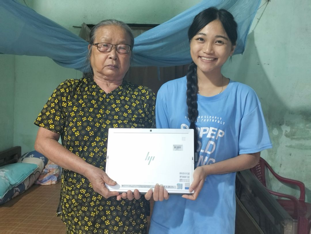 Và cháu vô cùng xúc động khi ngày hôm nay đã chính thức nhận được món quà vô cùng giá trị, thiết thực và ý nghĩa từ bác Ánh – một chiếc máy tính xịn xò và chất lượng lắm ạ! Không chỉ là một công cụ học tập, với cháu, đây còn là món quà của tình thương, của sự tin tưởng và sẻ chia mà bác đã dành cho cháu. Không chỉ có máy tính, trong hộp còn có thêm cả tai nghe, đồng hồ điện tử,… là những món quà rất thiết thực và phục vụ rất lớn cho việc học của cháu.