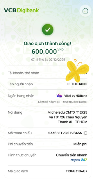 Lathuvang đã trung chuyển CMTX T2,3/25 đến cháu Thành Ái của cô Michele_du và GĐ. Tháng 3 là tháng cuối cùng của đợt CM này.@banbe6x: nhờ anh xin ý kiến cô Michele_du và GĐ có thể CM cháu tiếp tục được ko?. Cảm ơn.