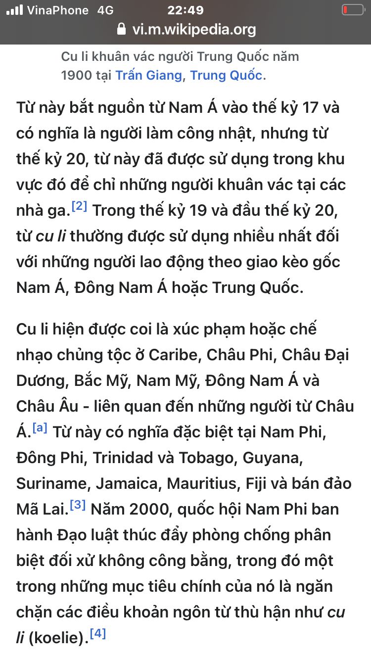 Mời BQT giải thích vì sao BQT nghĩ mình là Cu Li - Một từ gốc Pháp, thịnh hành trên thế giới trong đó có đông Nam Á biểu thị cho sự khinh miệt và xúc phạm?