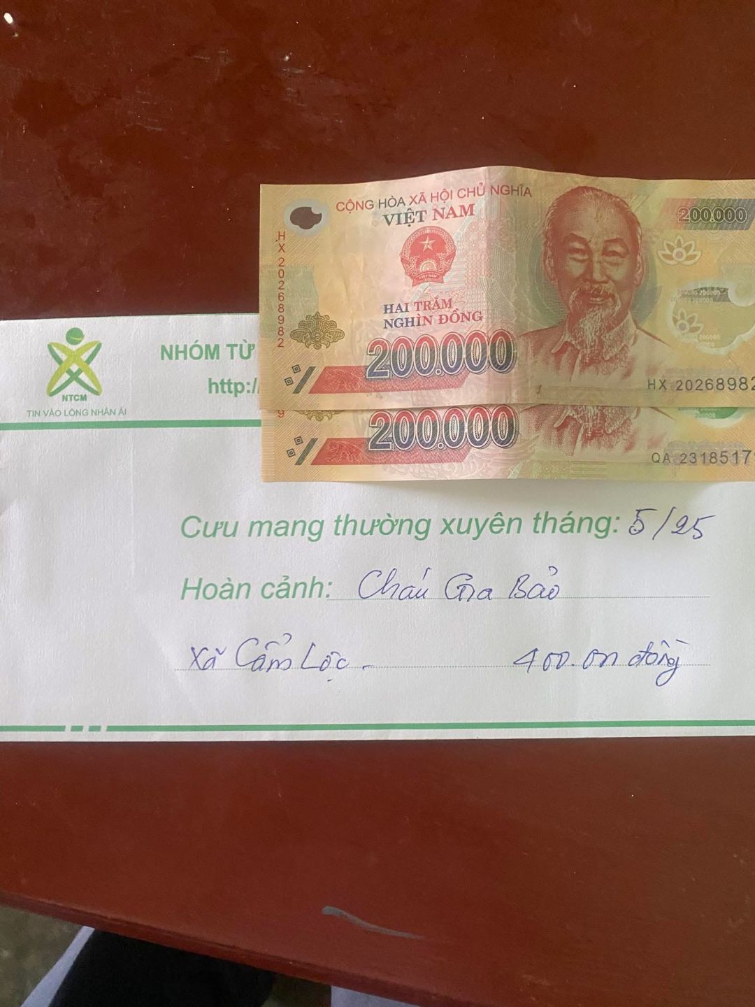 2) Hình ảnh chụp với các hoàn cảnh phải thấy rõ số tiền, số nhu yếu phẩm được trao.