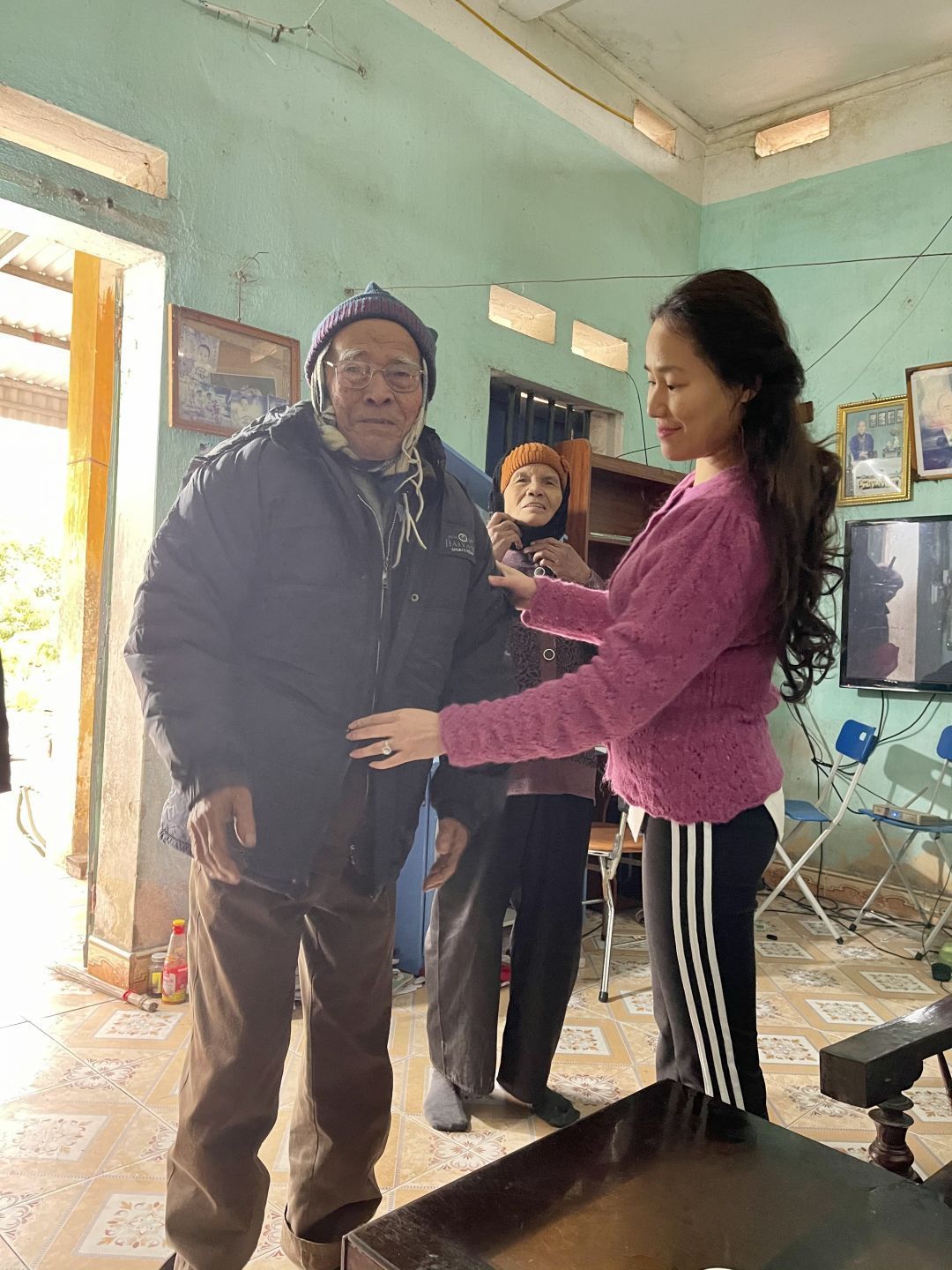 Thứ 6 tuần trước vợ chồng e đã về Hoàng Gián, tìm đường khá thuận lợi vì cả miền quê đó đều biết hoàn cảnh 2 em và chỉ đường rất tận tình. Em đã trao quà tặng, 5 triệu tiền mặt cho ông bà Trung Hiếu (bao gồm 1,5 tr của bạn Kiều Nga và Ngọc Thuý Vũ, 500k của 1 chị bạn em gửi tặng và 3 tr của gia đình em ủng hộ 2 con để nộp học hành và đóng góp đầu năm). Ông bà rất xúc động và gửi lời cảm ơn mọi người.