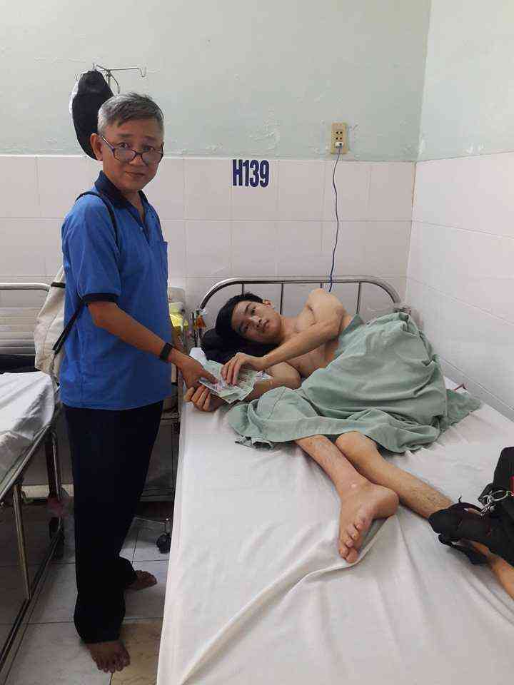 Một em học lớp 4,Còn bản thân em từ khi em bị tai nạn giao thông đã lấy đi đâu chân của em. nhưng em cũng không đầu hàng với số phận.khi sức khỏe em hồi phục thì em cũng tìm hướng để cải thiện cuộc sống cho bản thân không làm gánh nặng cho xã hội,và gia đình, em quyết tâm tìm cho được được một cái nghề phù hợp với mình. rồi ông trời cũng không phụ lòng em cũng tạo điều kiện cho em tìm được cái nghề sửa điện thoại do em mãi mê học nghề không để ý đến việc mình ngồi lâu quá sẽ bị lở loét và hiện nay em bị lở loét nặng ăn luôn bên trong và bị hoại tử bác sĩ điều trị hướng dẫn là phải phẫu thuật cắt lọc tình hình hiện nay của Em Quốc nhập viện trong tình trạng vết loét ăn luôn cần phải phẫu thuật cắt lọc