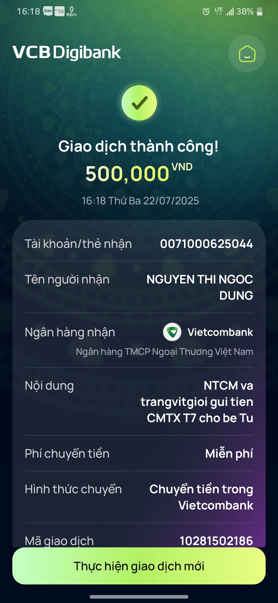 Hoàn cảnh của cháu Tuấn tú đã hết khoản cmtx từ tháng 11, rất mong nhận được sự chung tay của cả nhà, sau vài lần kêu gọi vẫn chưa nhận được sự hỗ trợ nên sau 72 giờ tiếp theo vẫn chưa có sự hỗ trợ mới, chúng ta xuất quỹ NTCM để cmtx cho hoàn cảnh của cháu Tuấn Tú, trong 3 tháng từ tháng 11 đến tháng 01/2026, mỗi tháng 500.000đ, rất mong nhận được sự quan tâm hỗ trợ của cả nhà