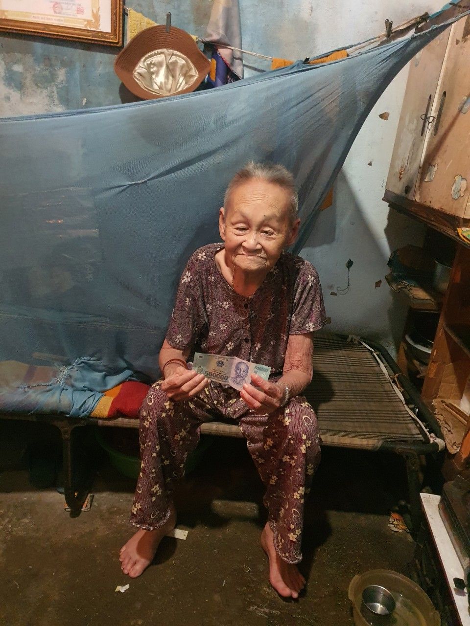Chân thành cám ơn sự yêu thương và giúp đỡ của cả nhà đã dành tặng cụ. Với cái tuổi hơn 90, hy vọng cụ sẽ vẫn còn sống khoẻ mạnh như nụ cười vui vẻ, hiền lành của cụ. Thương cho số phận ko nhà, ko người thân và đôi mắt mù loà của cụ.