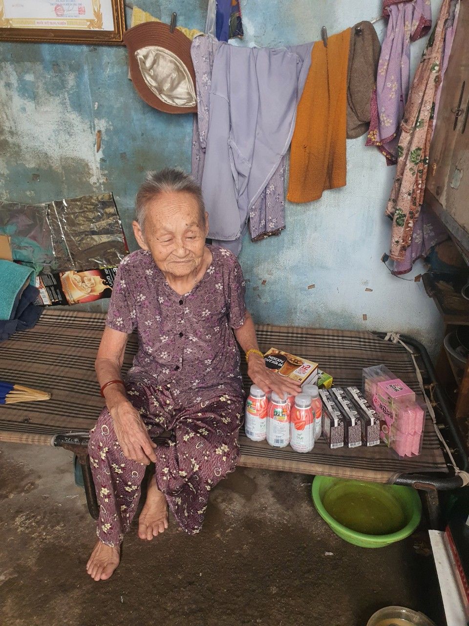 _ gạo, dầu Thái, bánh ngọt, sữa, cafe gói ...đến cụ. Quà của các bạn Phụng gửi tặng cụ Rớt dùng.