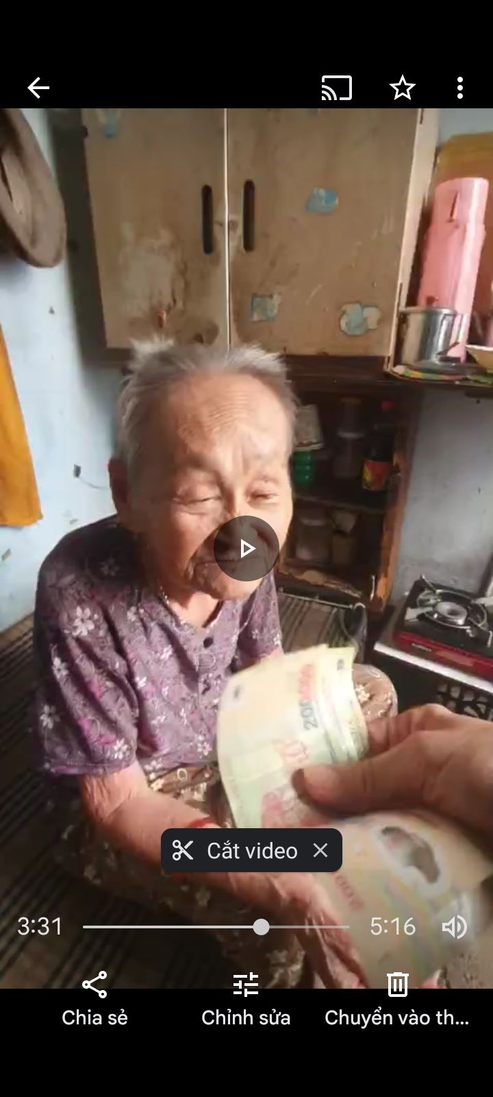 _ Ngày 19/11, em Vân trao 500k tháng 11 của Ngọc Lan & chai dầu xanh Mỹ của cô Đào Nguyễn gửi biếu cụ.