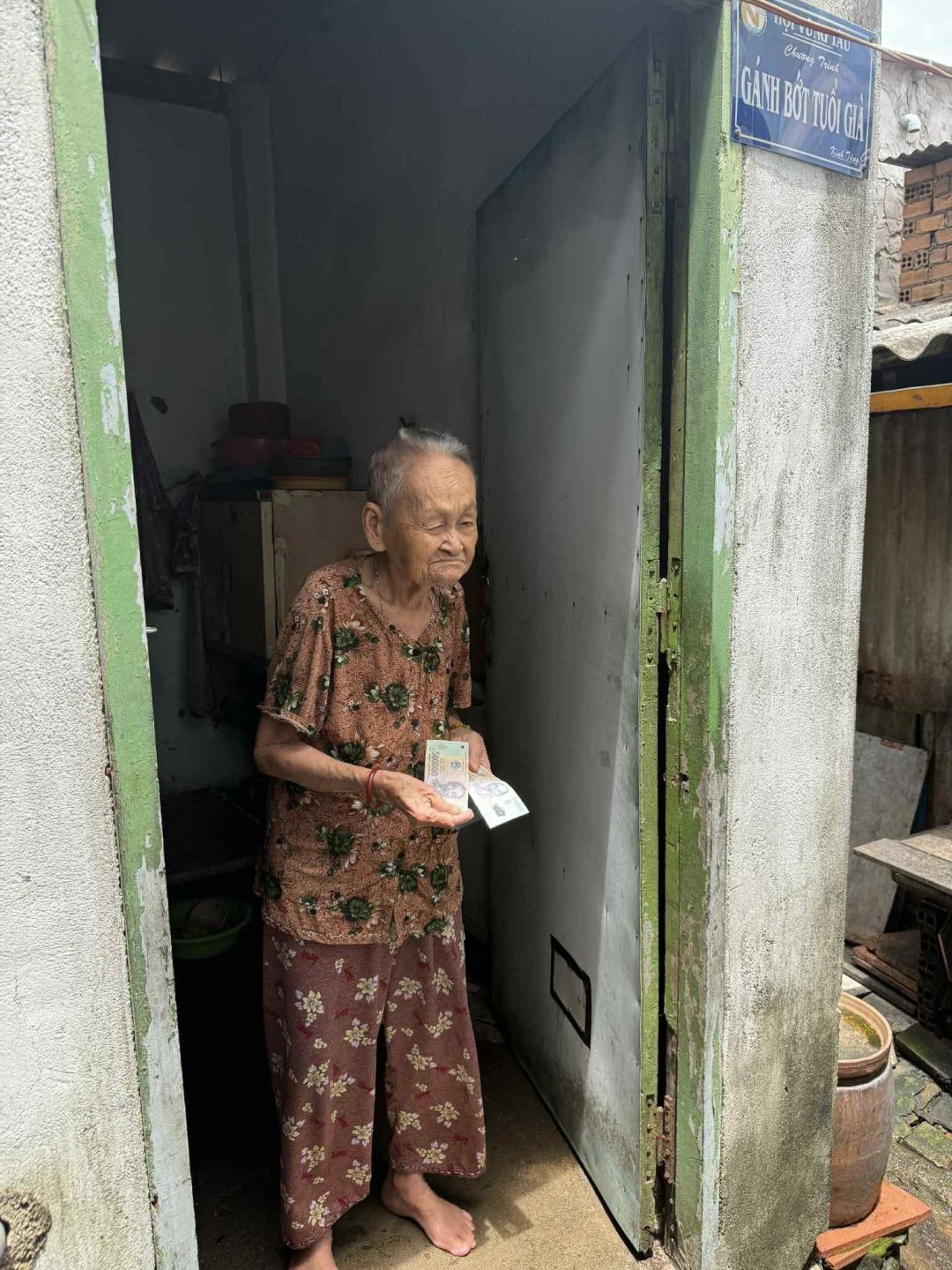 _ Ngày 21/10, em Vân trao 500k tiền tháng 10 đến cụ Rớt.