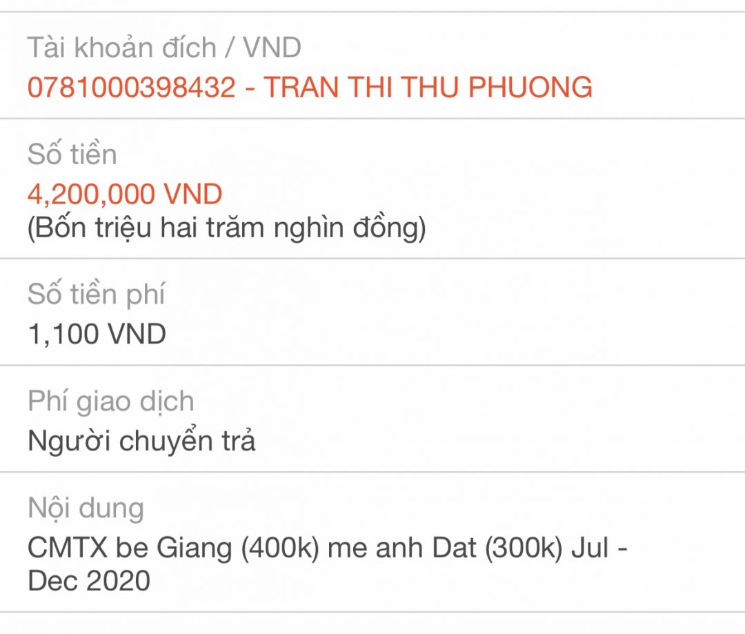 Anh Dzung Nguyen, bạn ThaiDzuy chuyển CMTX Tháng 7-12/2020 tới mẹ anh Tại (xin lỗi ghi nhầm sang anh Đạt)