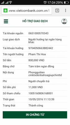 phong đã chuyển 800k đến tài khoản trên ạ!