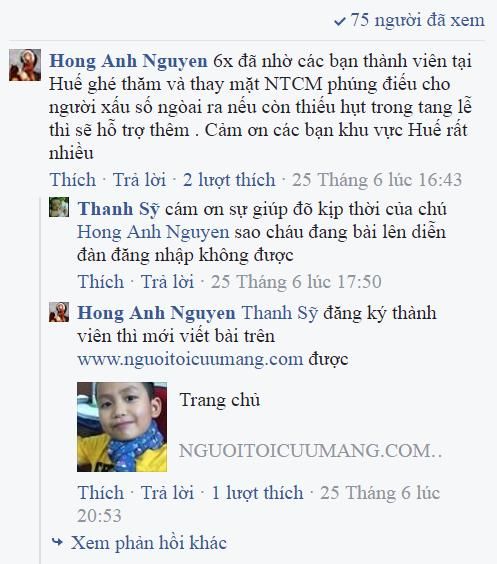 Tuy nhiên trường hợp này đã được bà con làng xóm cũng như những tấm lòng thơm thảo tại Huế chung tay hỗ trợ vẹn tòan và các thành viên của chúng ta đã đến phung viếng và chia buồn cùng gia đình người vắn số .