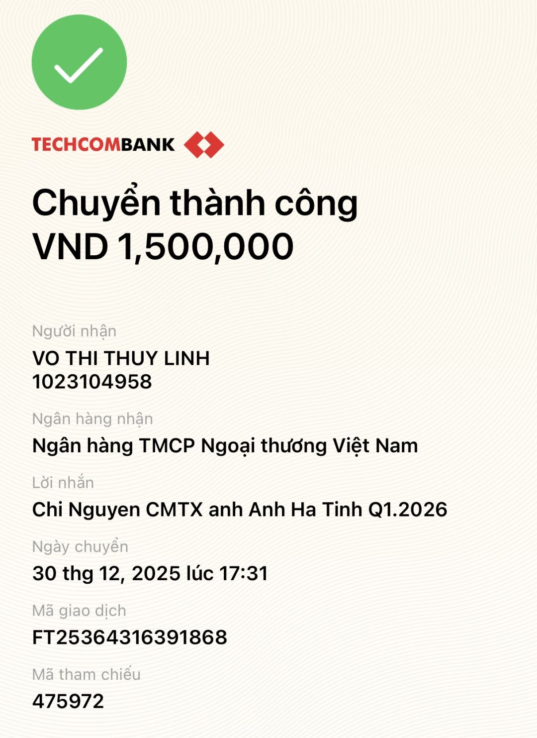 - [04/07/2020]: Trao CMTX t5/2020 gồm 500,000đ