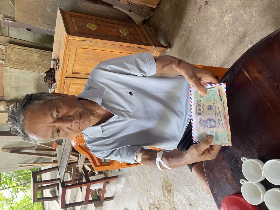 Nhóm HT đã tới thăm và trao tiền cmktx của chị NVH cho anh Liêu. 2tháng 1,600k.
