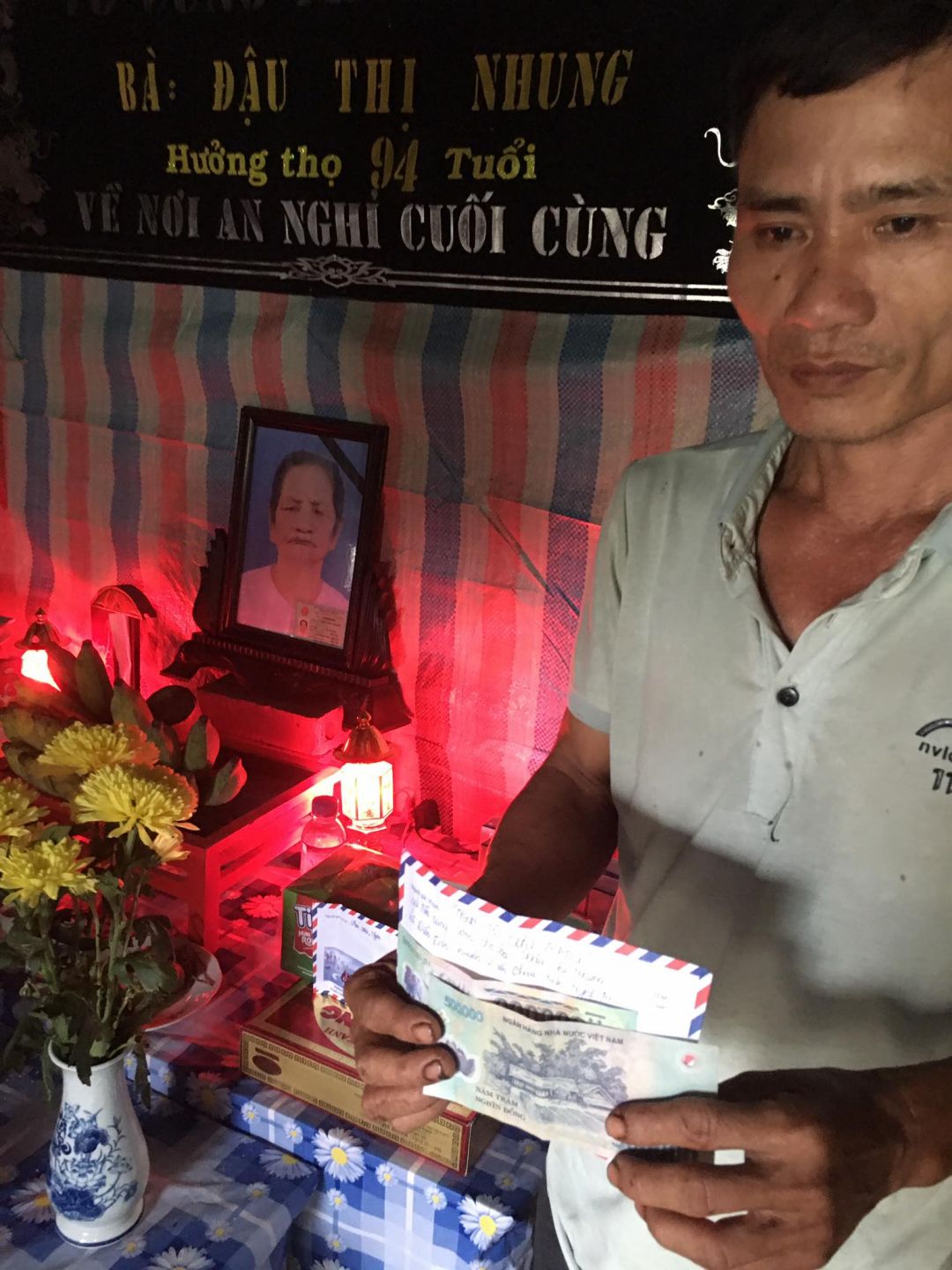 Dạ con đã nhận được rồi ạ. Con rất cảm ơn tất cả tình cảm của cả nhà dành cho cụ Nhung ạ.. Con tính mua ít hoa quả, bánh trái đến thắp hương cúng bà và gửi gia đình nhà hàng xóm cúng cơm cho bà hằng ngày ạ. Con cảm ơn cả nhà rất nhiều ạ!