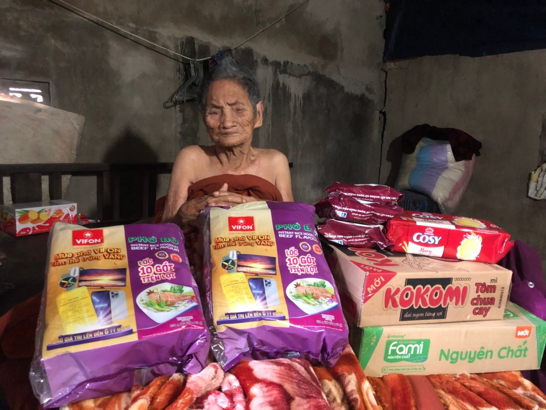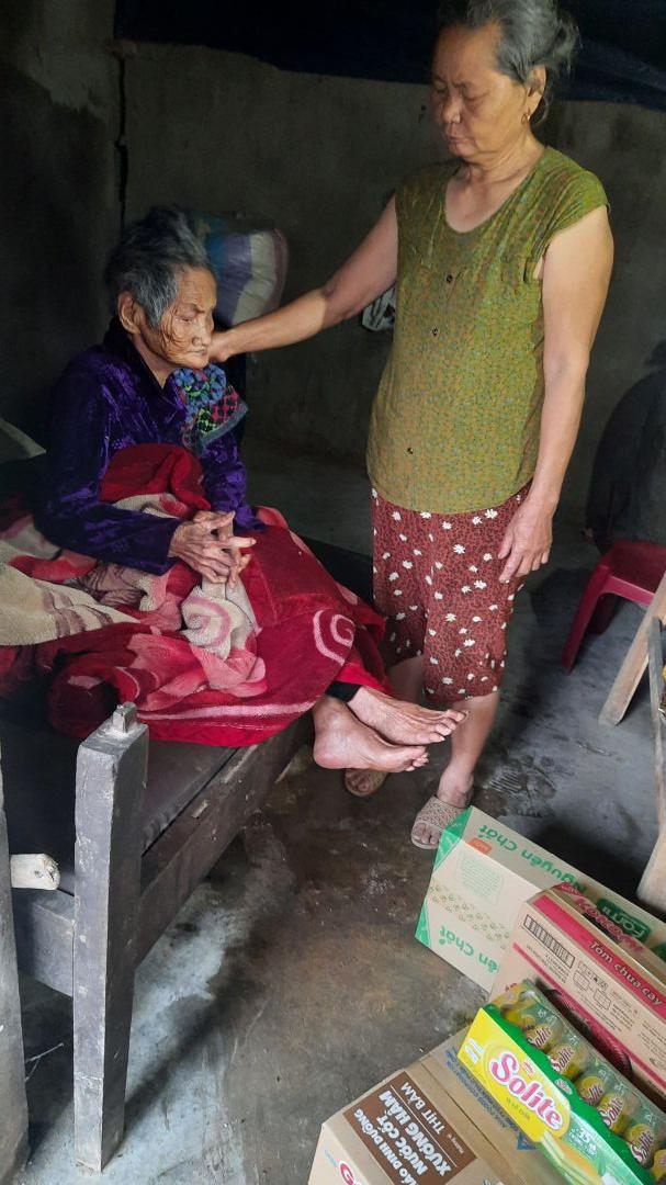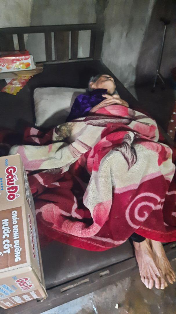 Hôm trước con tới thì bà đã yếu lắm rồi, không tự ngồi dậy được nữa. Cũng không nhận ra mọi người xung quanh nữa.. không biết bà còn sống được bao lâu nữa không.. bà ăn ít và ăn kém lắm.. hàng xóm hay mang thức ăn của bà cũng đi làm cả ngày, cũng k tận tình chăm sóc bà được, con đến thì phải nhờ người hàng xóm khác nữa để nâng bà dậy, lấy đồ cho bà ăn. Bà yếu lắm rồi ạ.. Thay mặt bà, con cảm ơn chị Trieuquang và cả nhà đã quan tâm, giúp đỡ bà. Con đã trao xong 3 tháng 1, 2, 3. Sang tháng 4, con mong sự giúp đỡ của c Trieuquang và cả nhà trong những tháng tiếp theo ạ!. Con cảm ơn ạ!