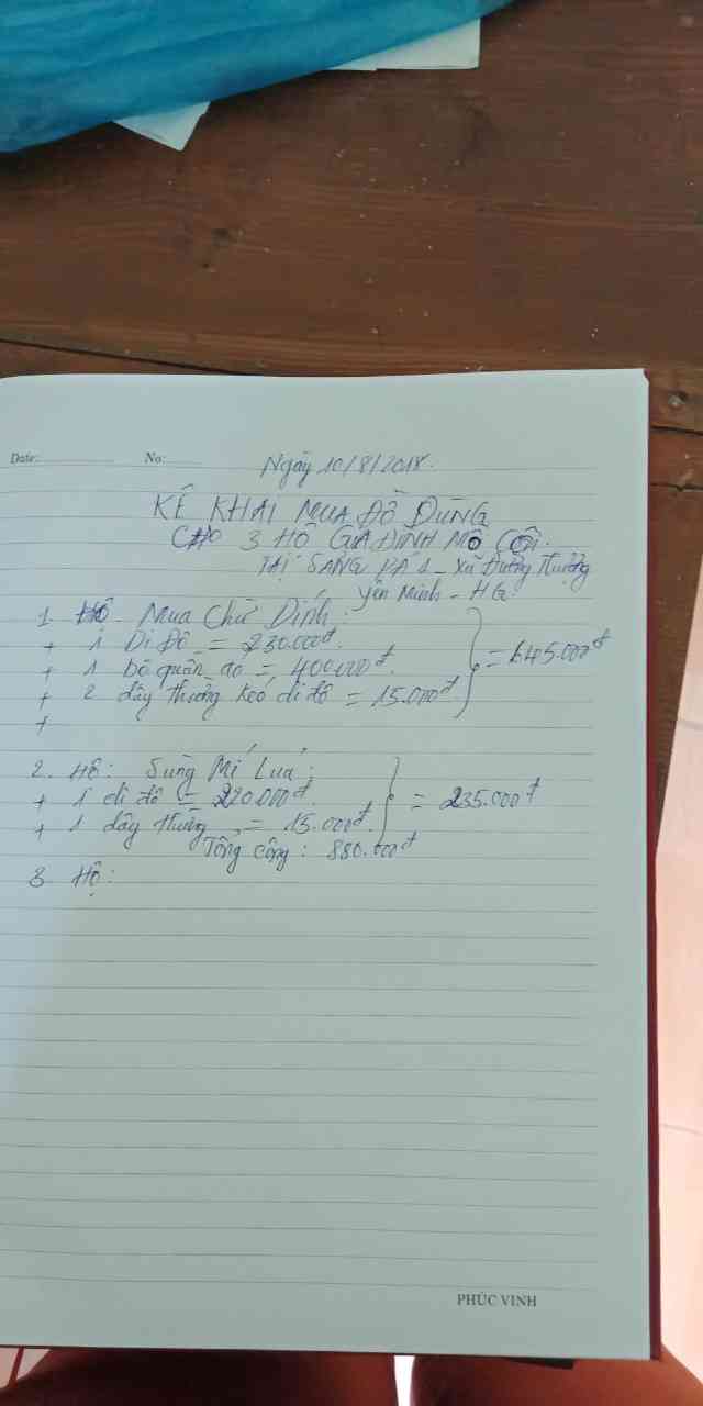 ... Để phục vụ cho sinh hoạt hàng ngày  - Chị Sùa có đề xuất mua thêm một số dụng cụ cho ba hộ như sau:
